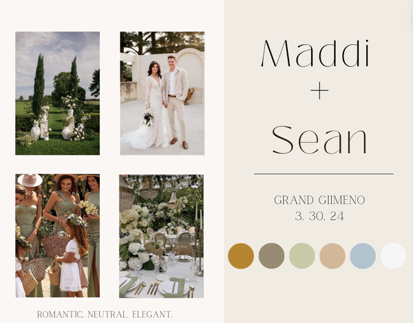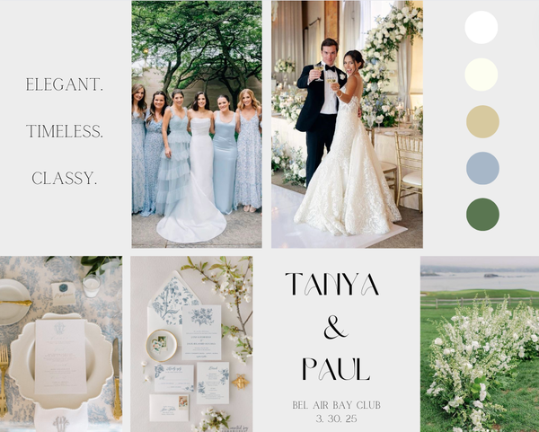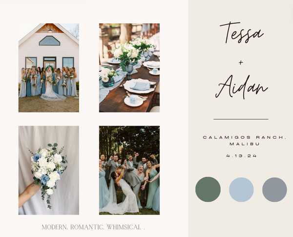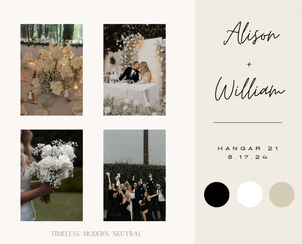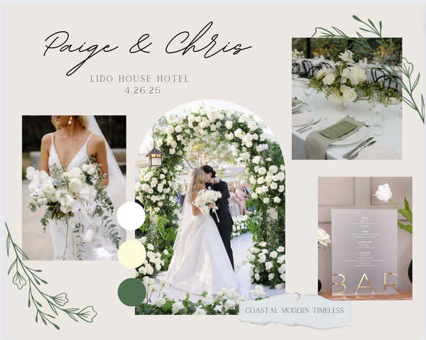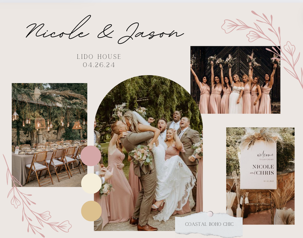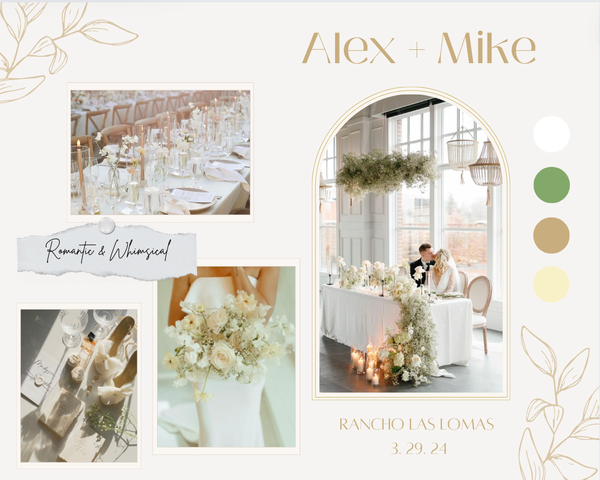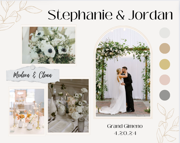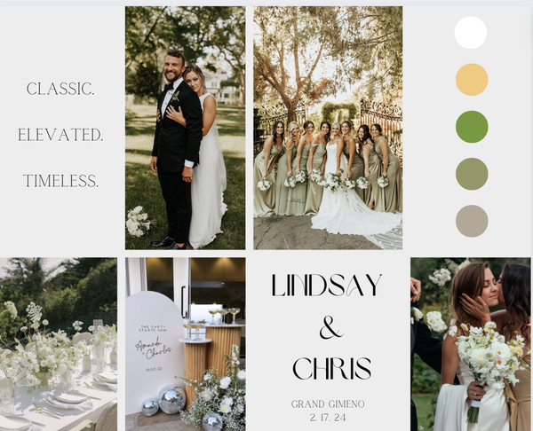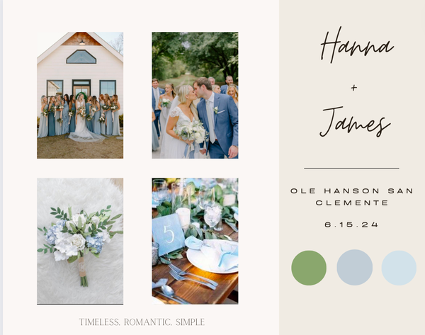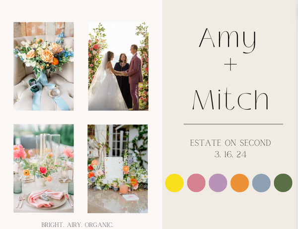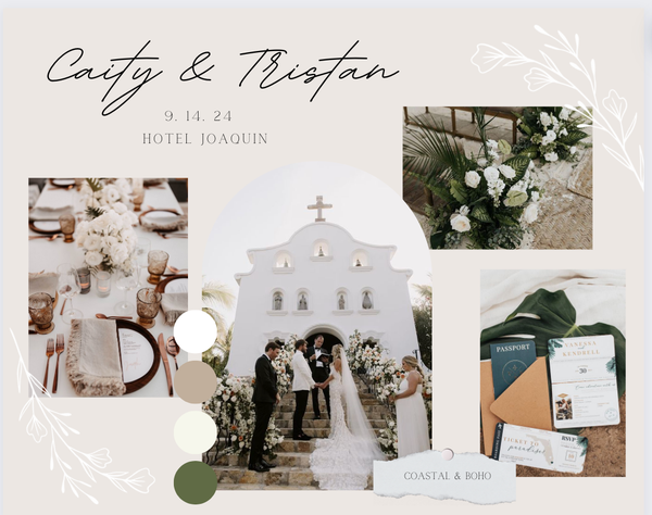 Victoria Martin has created multiple mood boards during her internship and position at Sunshine Events. The mood boards were all created on Canva and they all included wedding inspiration that was specific to each couple's wants and visions.
